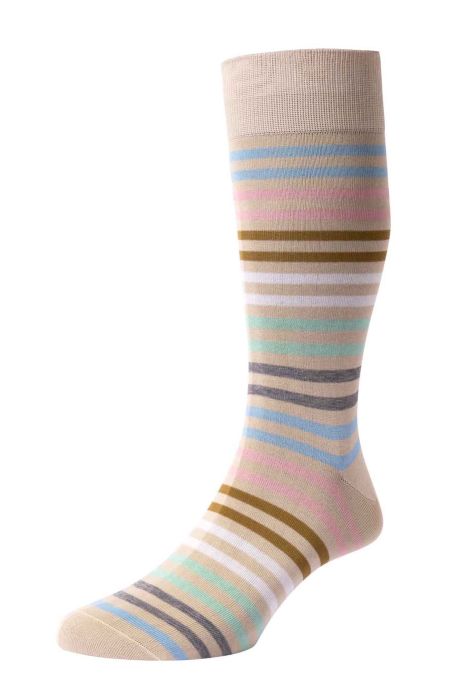 Kilburn striped men's dress socks are one of Pantherella's classic designs. The fine-gauge cotton lisle yarn provides an exceptionally smooth finish that slides easily into slim dress shoes. The balanced stripe design adds personality to traditionally neutral workwear or jeans and trainers.
