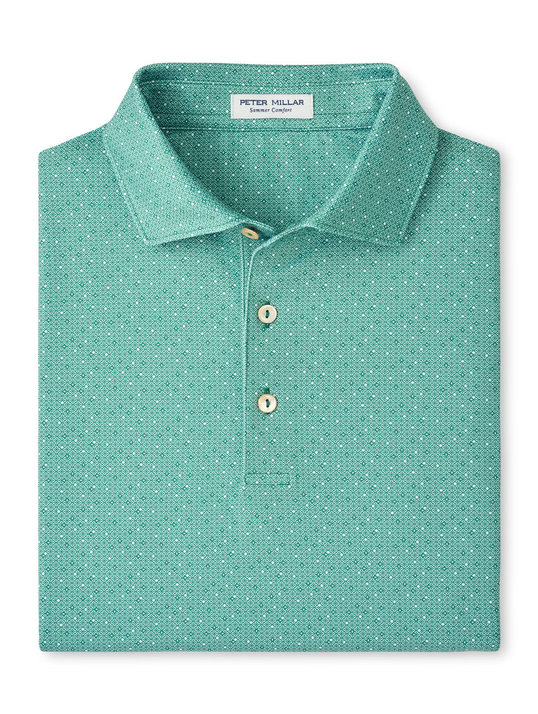 Peter Millar's Summer Comfort jersey polos are gold standards for softness and exceptional performance. These are packed with four-way stretch, wicking and UPF 50+ protection in their signature fabrication. This shirt features a custom-designed geometric print for added style. Finished with a spread collar and three-button placket.