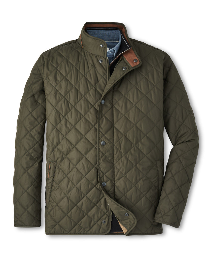 A benchmark in sportswear style, Peter Millar's iconic quilted coat is equally classic and current. This season’s model utilizes a fabric that retains water-resistant and windproof qualities with a more subtle, matte finish and a hint of texture. Featuring an unlined interior to reduce weight, it offers ample warmth and layering ease in a more city-ready design.