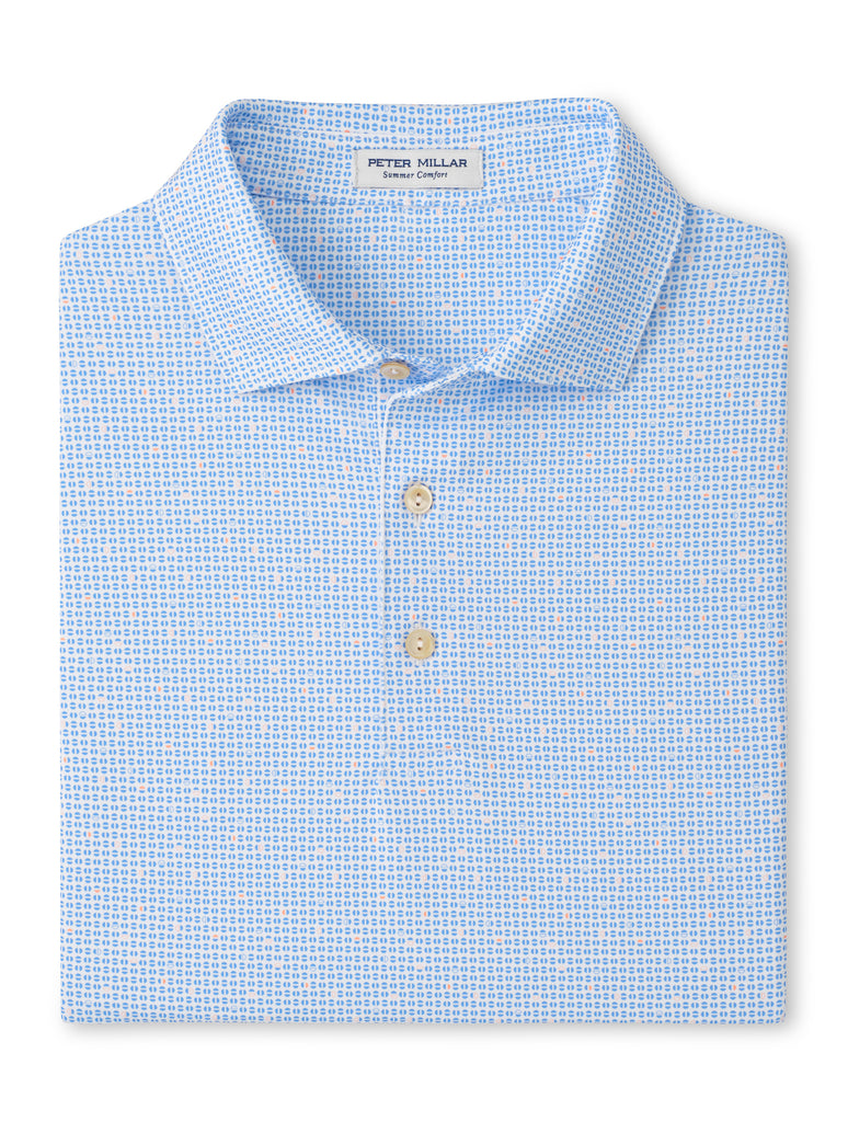 Peter Millar's Summer Comfort jersey polos are gold standards for softness and exceptional performance. These are packed with four-way stretch, wicking and UPF 50+ protection in their signature fabrication. This shirt features a custom-designed geometric print for added style. Finished with a spread collar and three-button placket.
