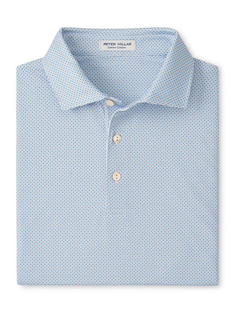 Peter Millar's Summer Comfort jersey polos are gold standards for softness and exceptional performance. These are packed with four-way stretch, wicking and UPF 50+ protection in their signature fabrication. This shirt features a custom-designed geometric print for added style. Finished with a spread collar and three-button placket.