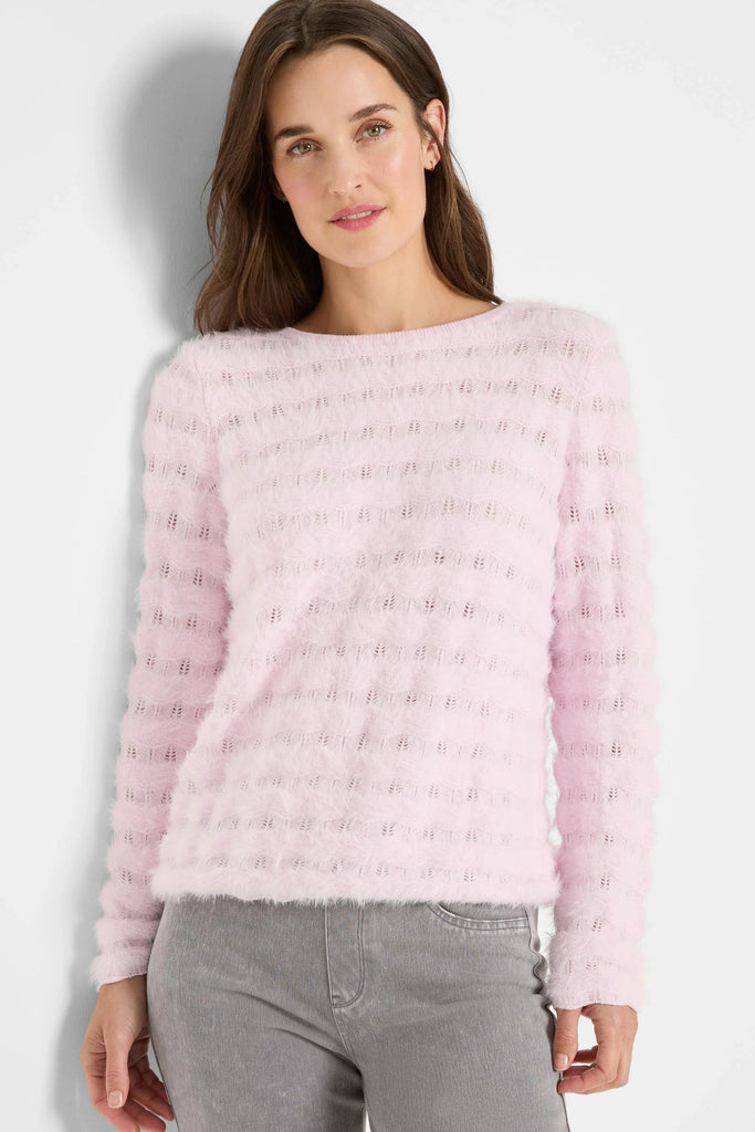 The Cozy Waves Sweater is all about texture, detail, and ease. An intricate pointelle stitch shows off Nic + Zoe's knit expertise, while a touch of fuzziness gives it that soft, elevated feel. Finished with subtle wavy edges at the cuffs and hem, it's a sweater that stands out in the quietest way.