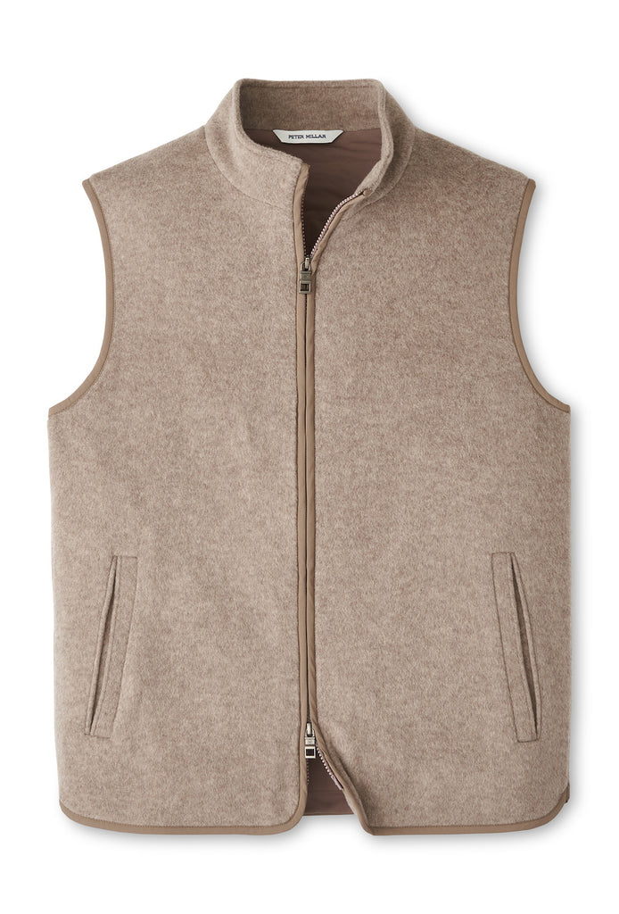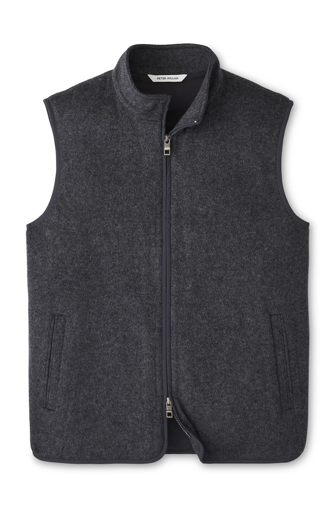 Formerly known as Crown Flex Fleece, this versatile layer highlights the luxurious feel of Peter Millar's exclusive stretch knit Merino wool. Lightly lined and padded this season, it’s the perfect multi-purpose piece to be worn casually or dressed up over sport shirts and sweaters. The design has been softened slightly with a scalloped hem, angled side pockets and a new zipper.