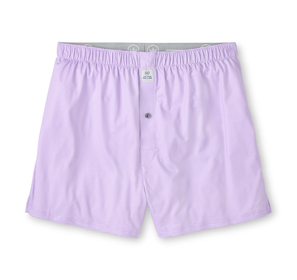 These novelty print boxers are designed with a supremely soft fabric that delivers enhanced performance and comfort. This style offers wicking, easy-care and odor-resistance, with comprehensive four-way stretch. These boxers feature a custom-designed gingham print. Finished with a Peter Millar logo-lined waistband and a button fly.