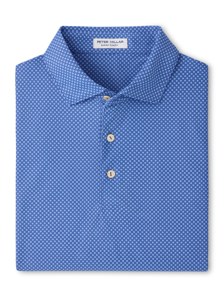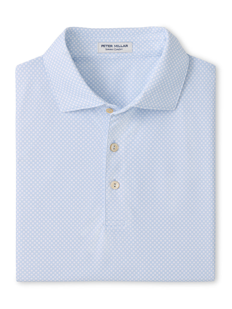 Peter Millar's performance mesh shirts feature a lightweight, lightly textured version of their signature Summer Comfort fabric, with four-way stretch and wicking properties. This shirt features a custom-designed geometric print for added style. Finished with a spread collar and a three-button placket.